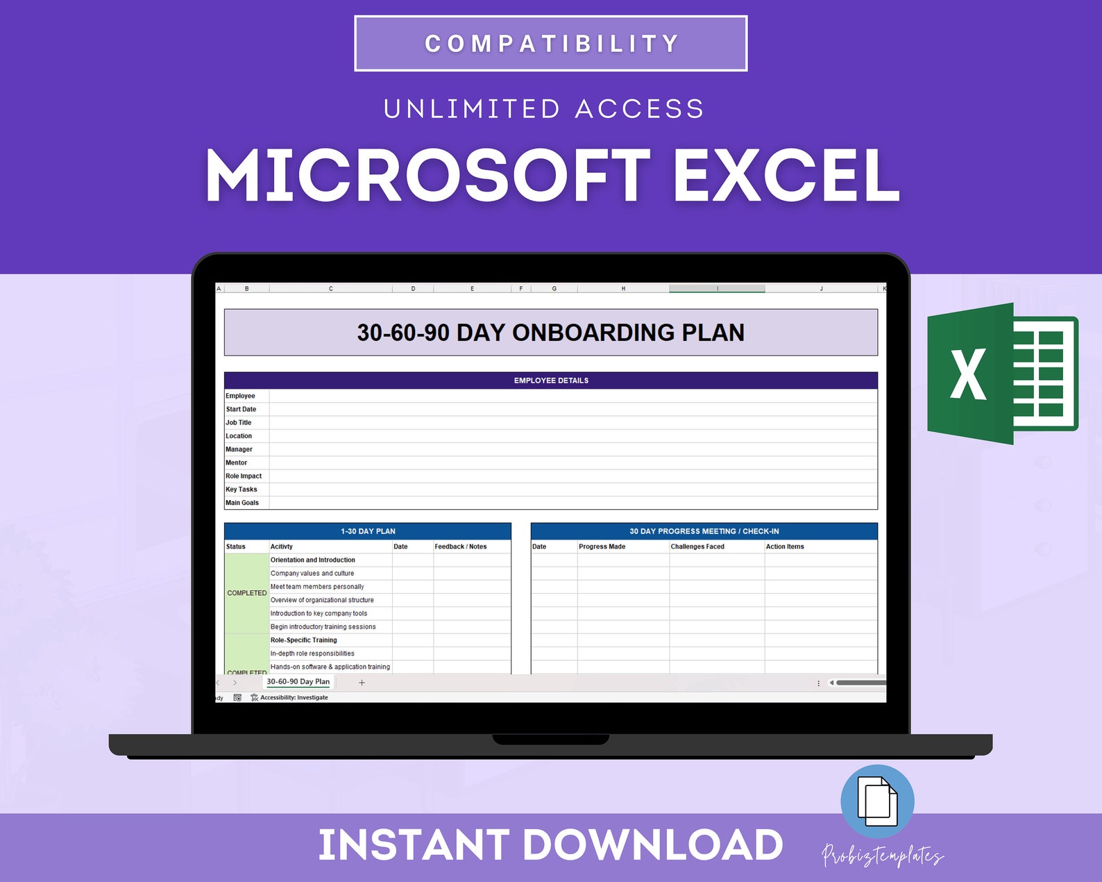 Employee 30 60 90 Day Onboarding Plan Spreadsheet Template New Hire