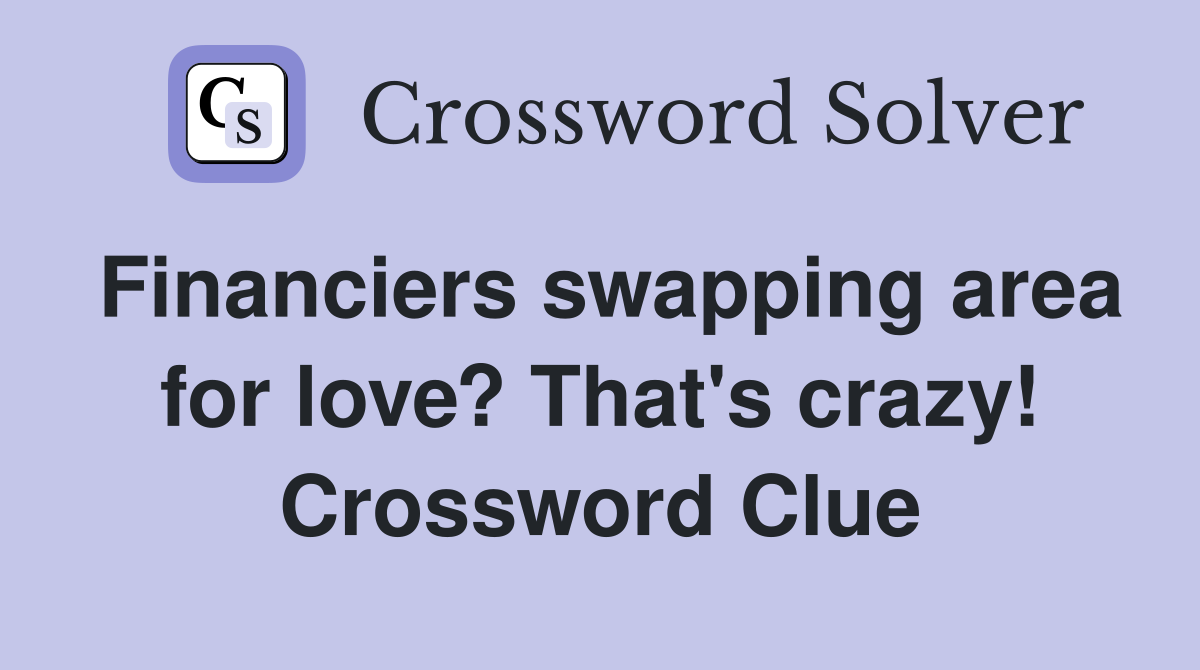 Financiers swapping area for love? That #39 s crazy Crossword Clue