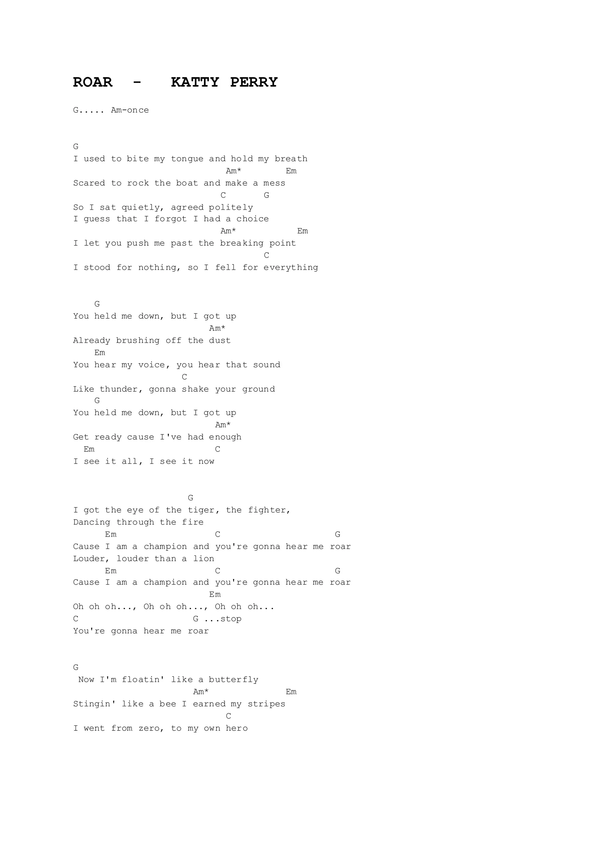 Katy Perry Roar Chords (Lyrics) ChordU