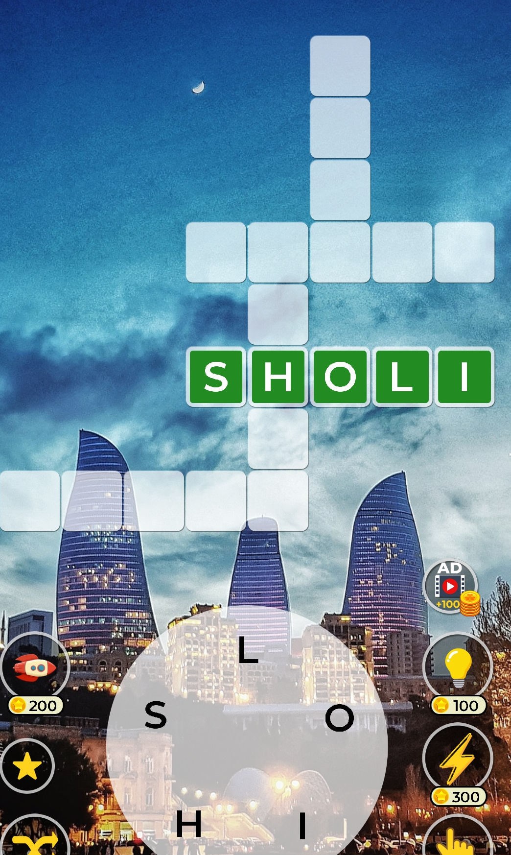 Crossword puzzle with the letters SHOLI StudyX