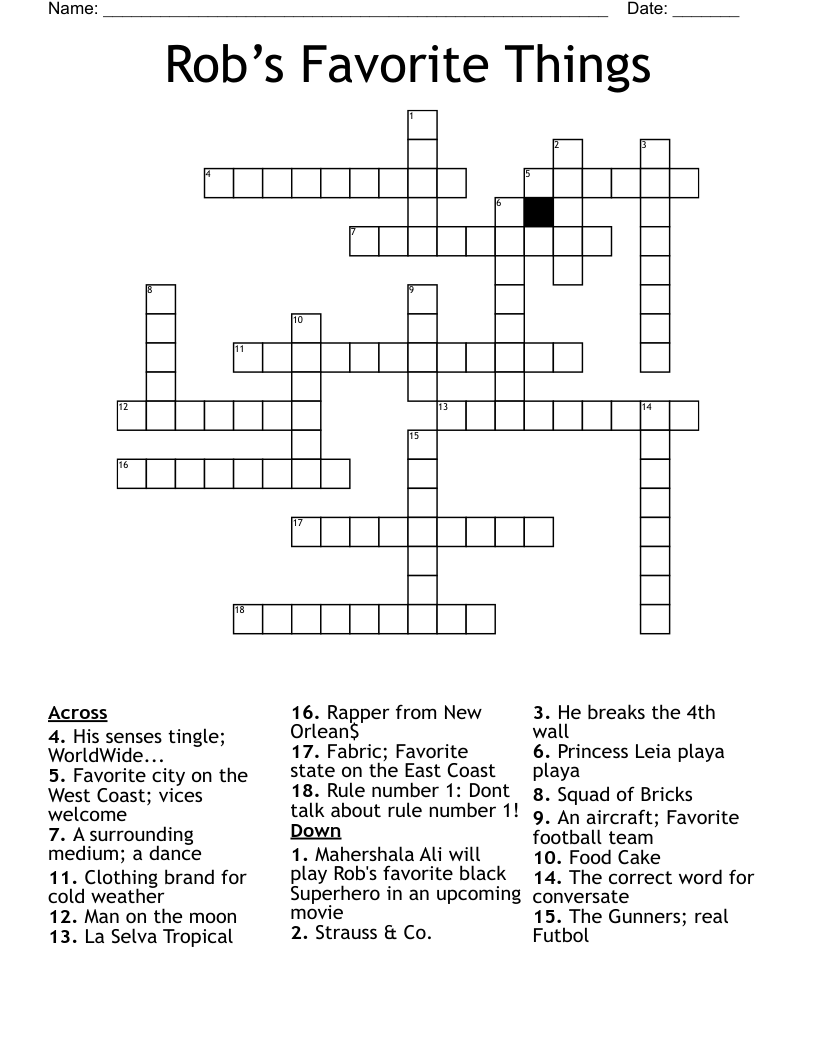 Rob s Favorite Things Crossword WordMint