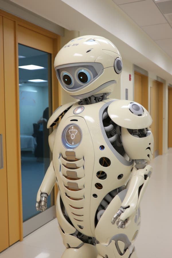 A Robot Standing in a Hallway AI Stock Illustration Illustration of