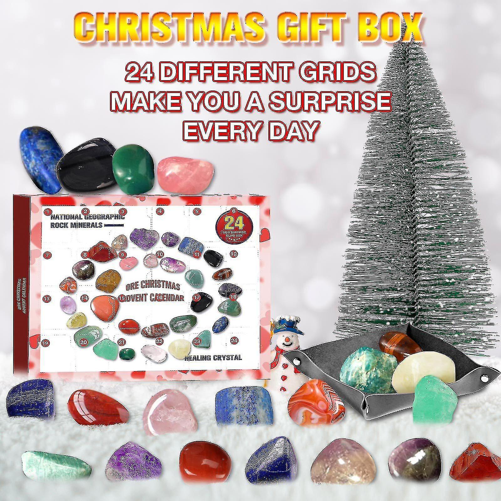 Auledio Christmas Advent Calendar 24 Grid Stone Rock Mineral Crystal