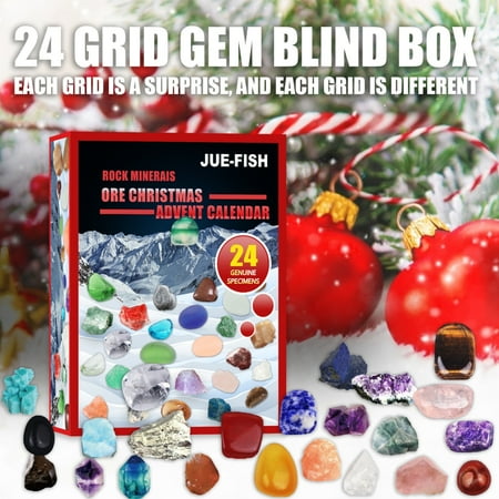Auledio Christmas Advent Calendar 24 Grid Stone Rock Mineral Crystal