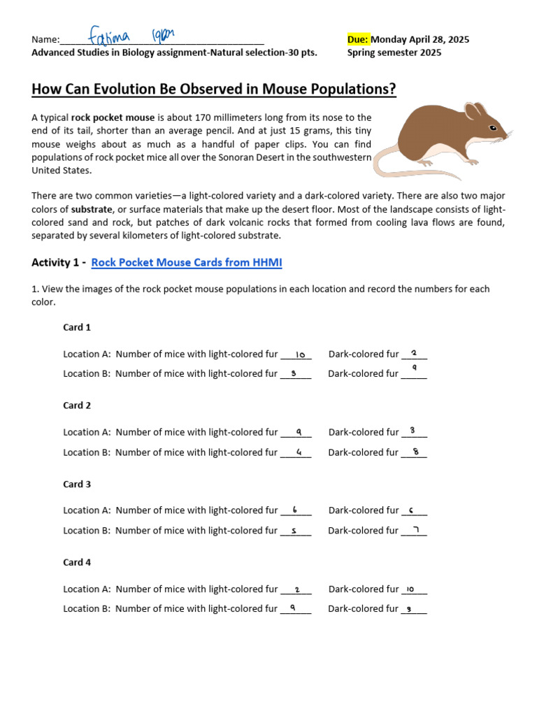Rock Pocket Mouse Activity pdf Name: How Can Evolution Be Observed in