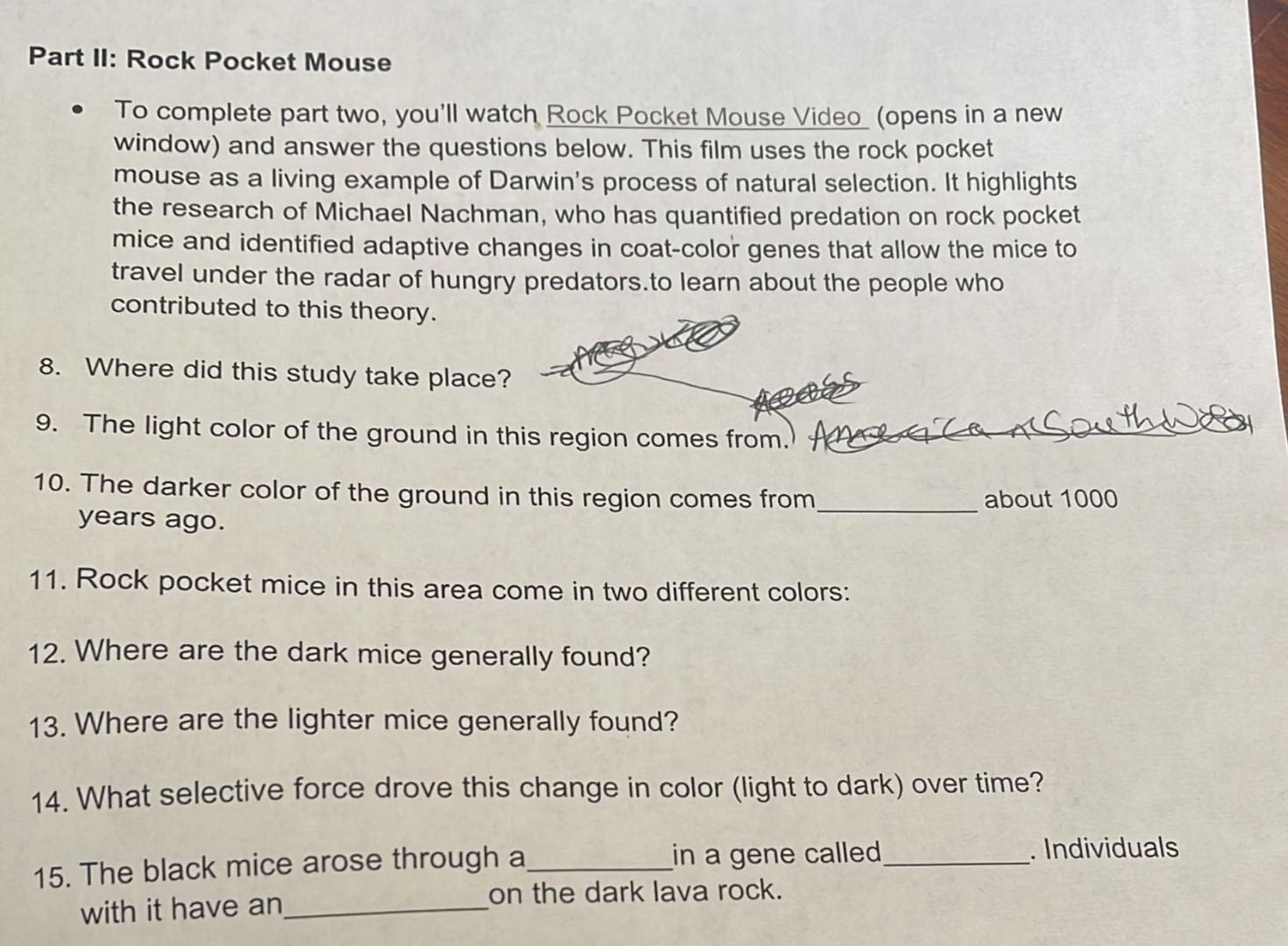 Natural Selection Rock Pocket Mouse worksheet 1 docx Evolution by