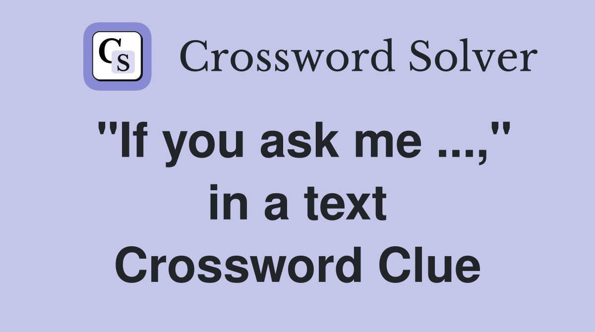 quot If you ask me quot in a text Crossword Clue Answers Crossword Solver