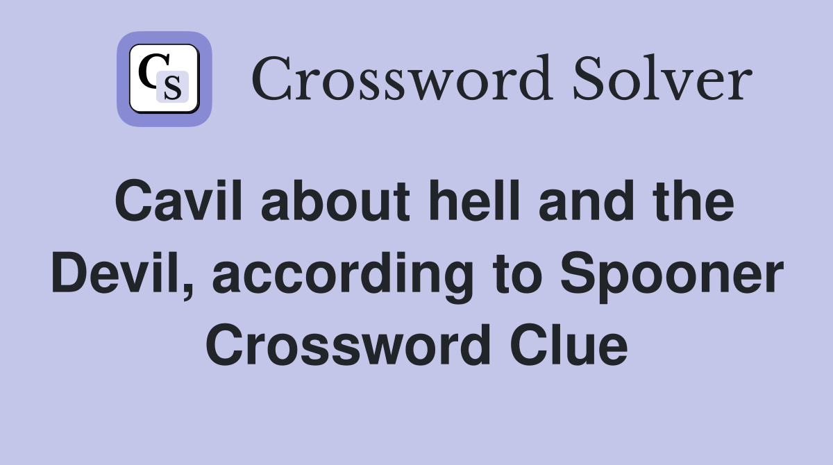 Cavil about hell and the Devil according to Spooner Crossword Clue
