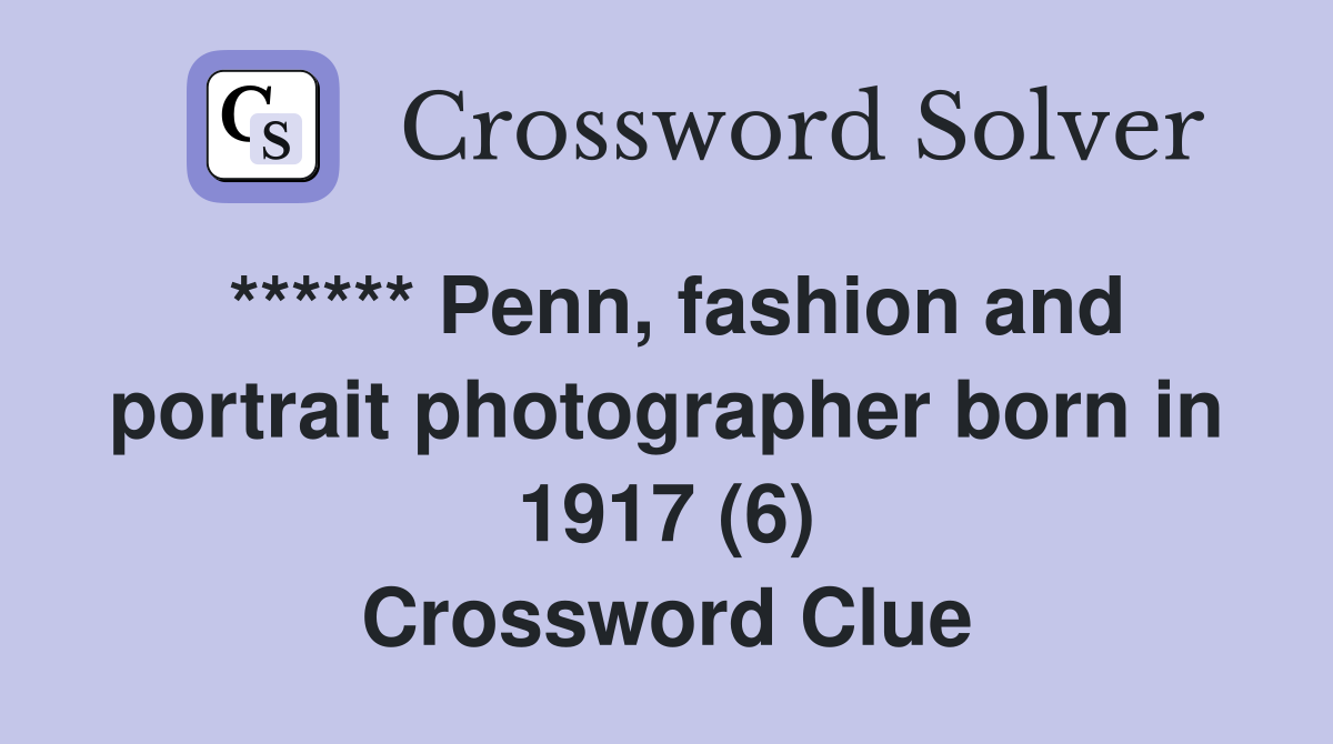 Penn fashion and portrait photographer born in 1917 (6) Crossword