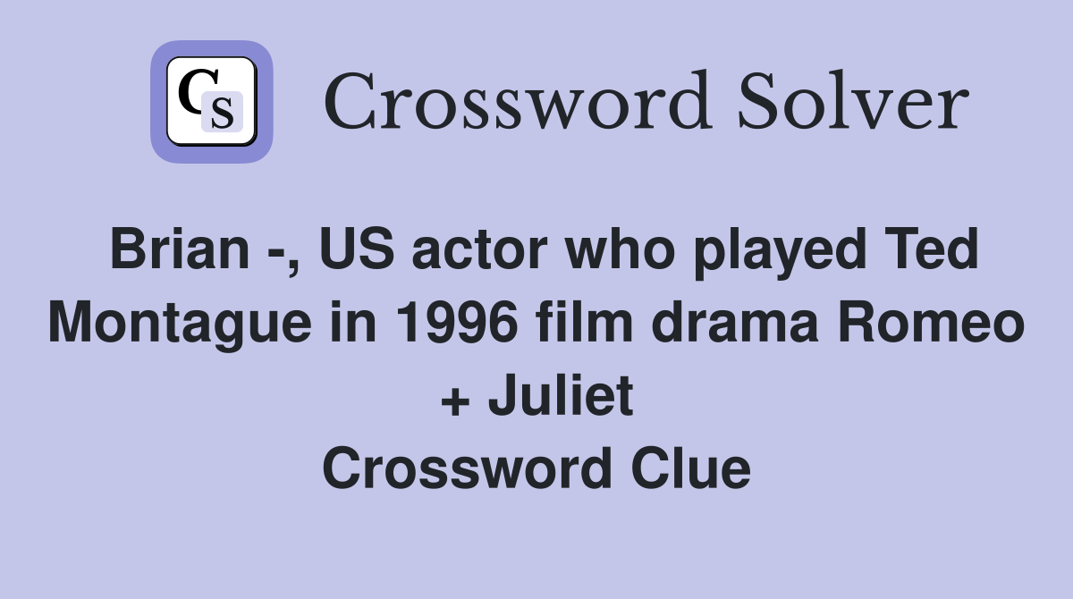 Brian US actor who played Ted Montague in 1996 film drama Romeo