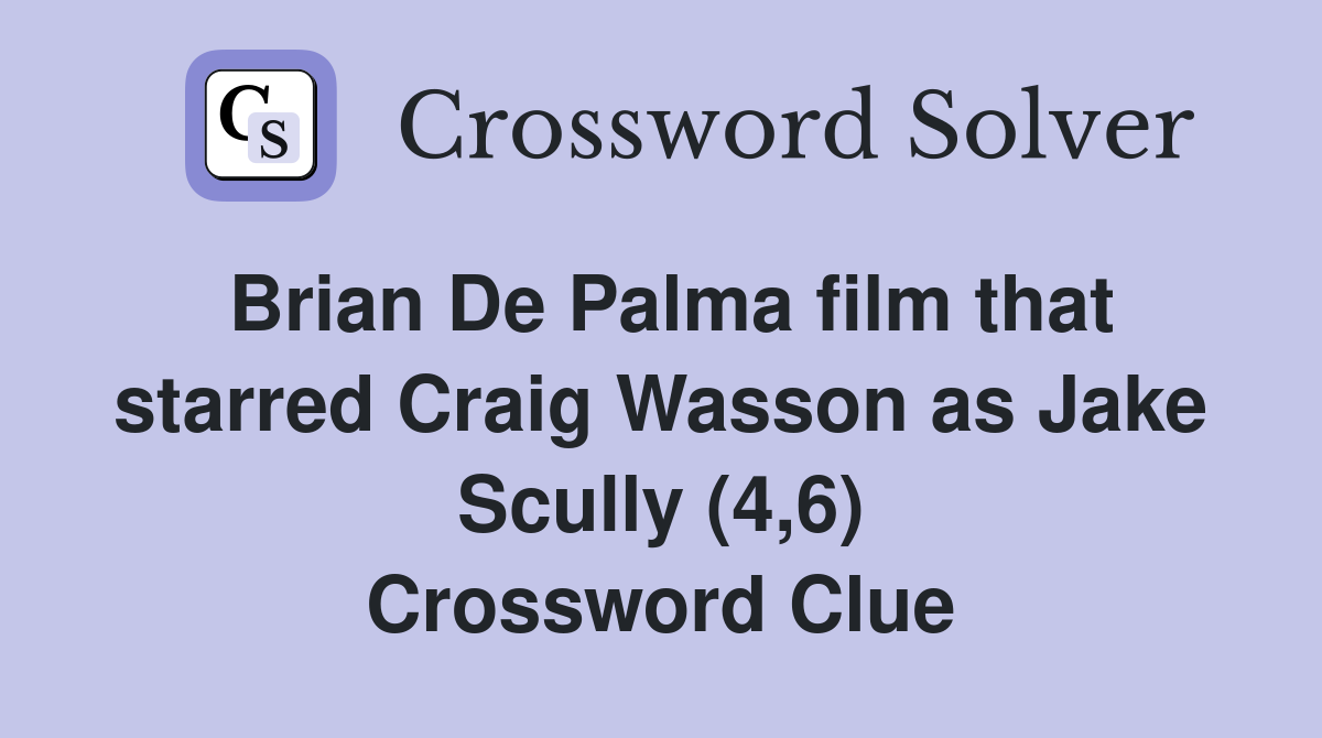 Brian De Palma film that starred Craig Wasson as Jake Scully (4 6