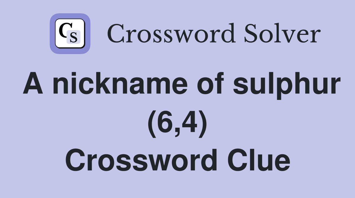 A nickname of sulphur (6 4) Crossword Clue Answers Crossword Solver