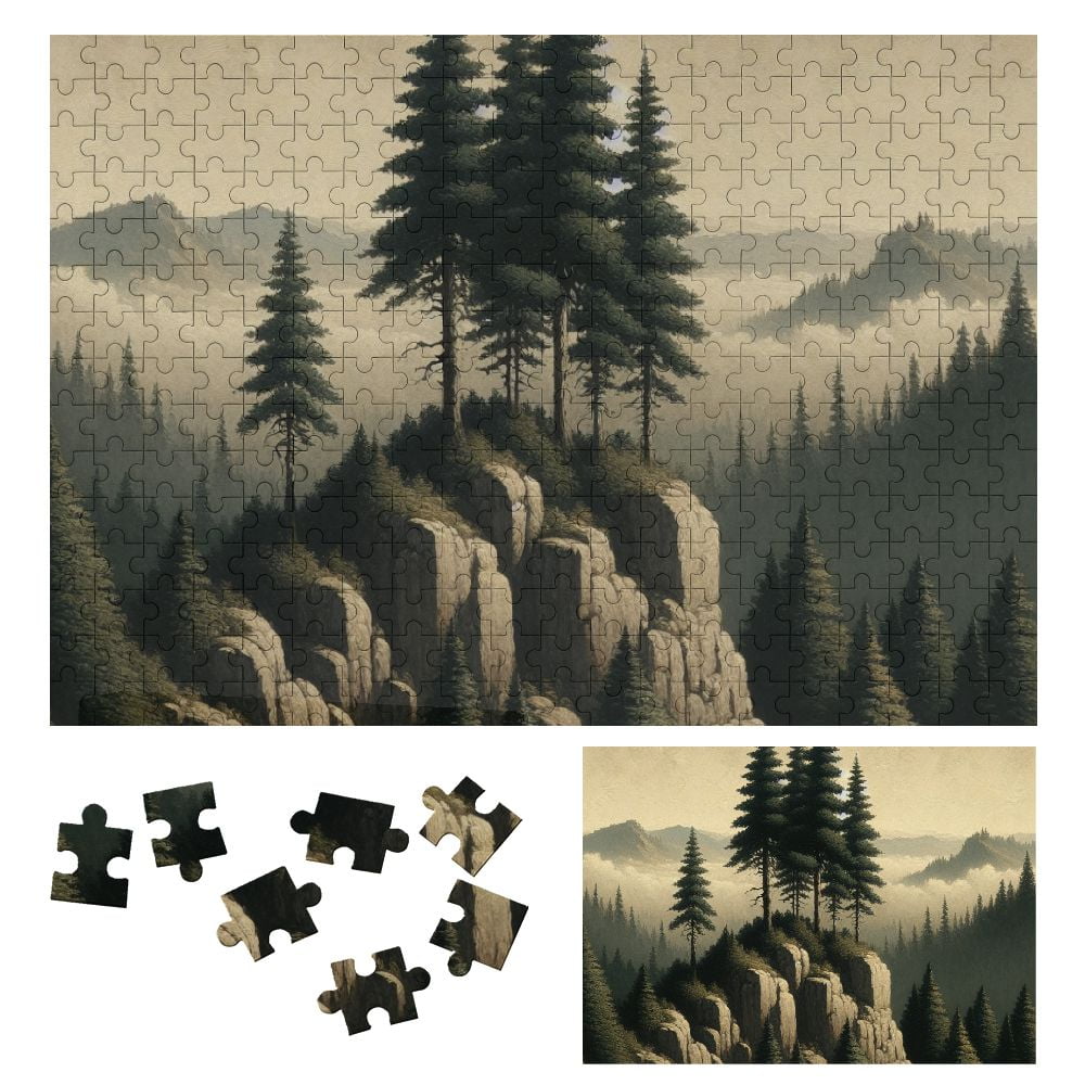 WENZZ Tall Trees Evergreens Rocky Outcrop Wooden Jigsaw Puzzle