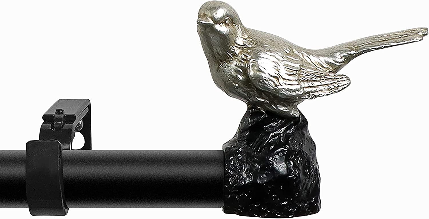 1 Inch Diameter Single Window Treatment Curtain Rod Pewter Bird