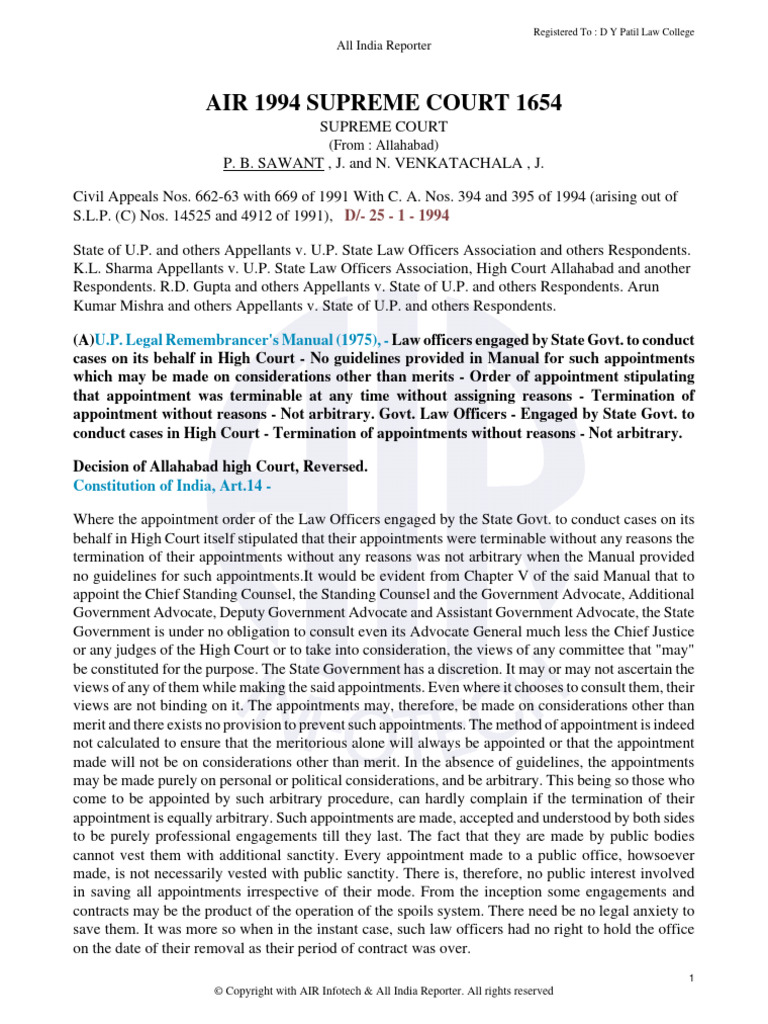 Air 1994 Supreme Court 1654 PDF Advocate Lawyer