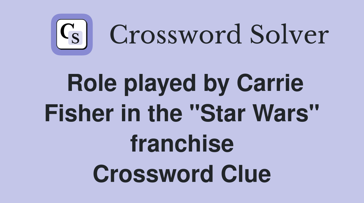 Role played by Carrie Fisher in the quot Star Wars quot franchise Crossword