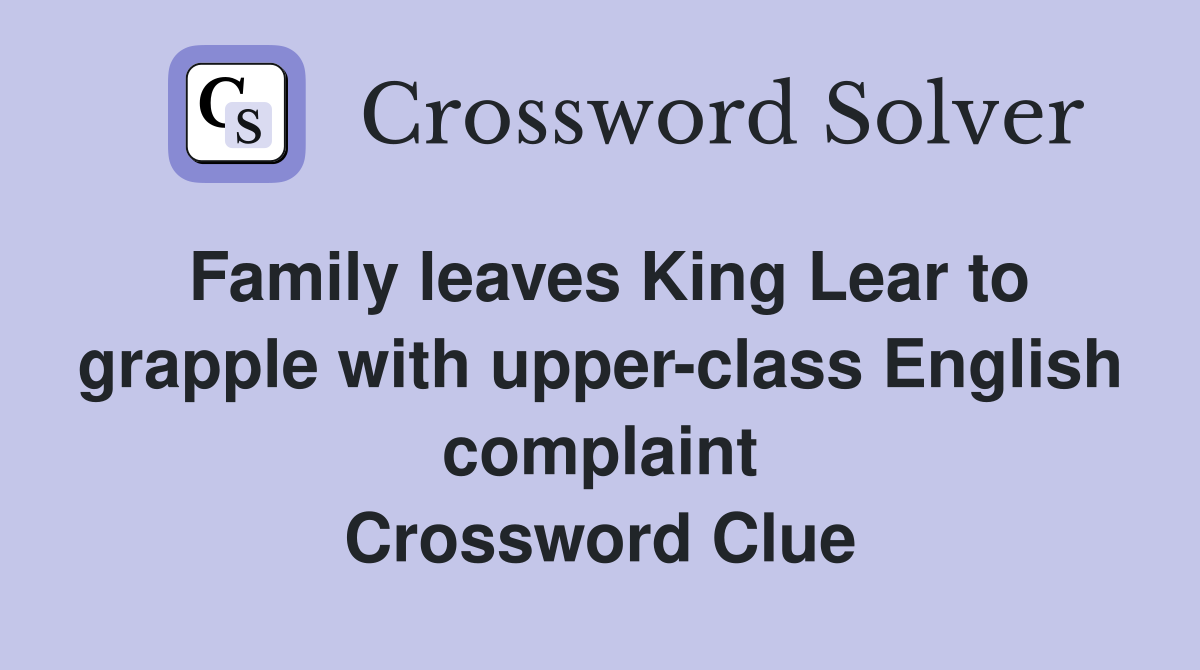 Family leaves King Lear to grapple with upper class English complaint