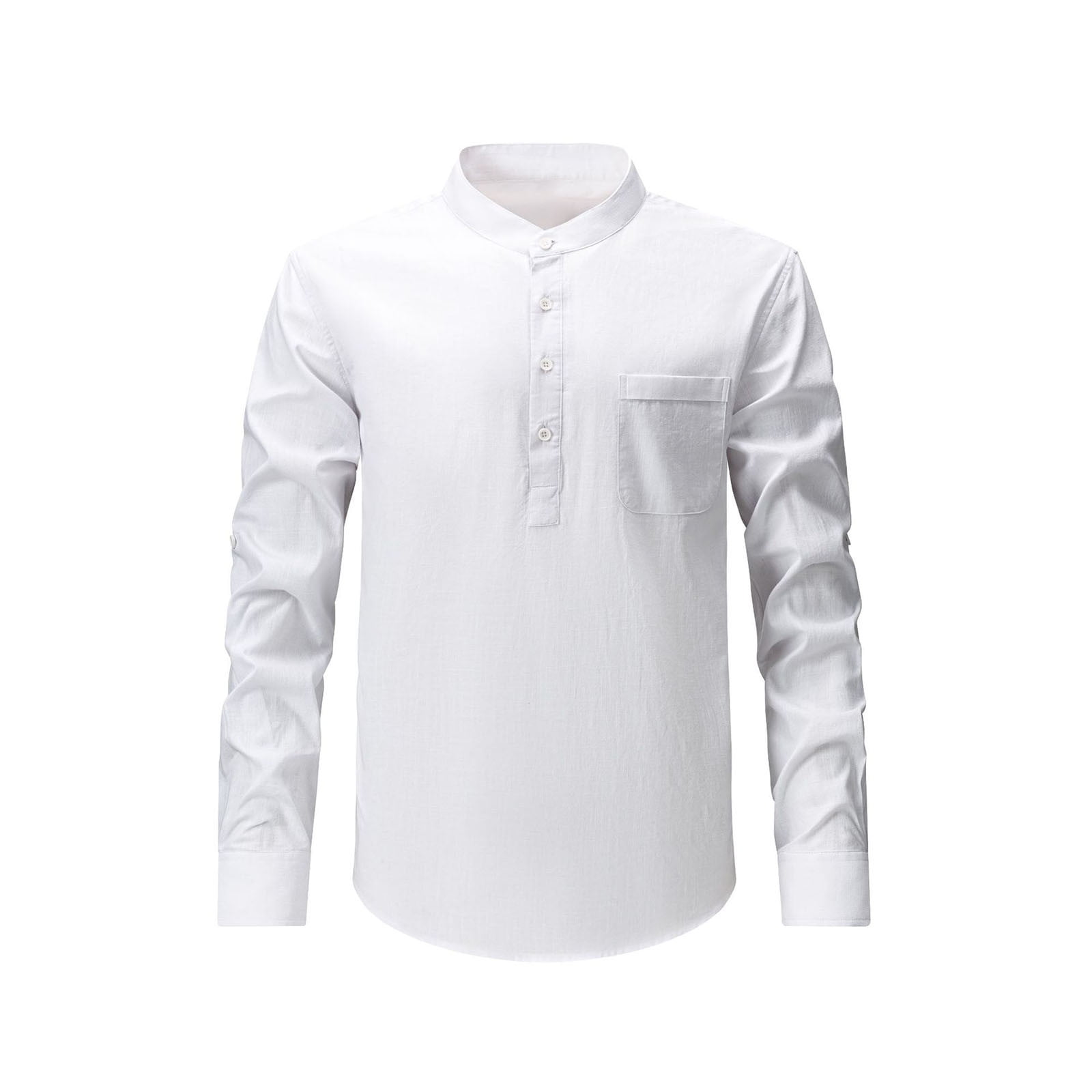 APEXFWDT Men #39 s Half Button Dress Shirt Band Collar Roll Up Sleeve