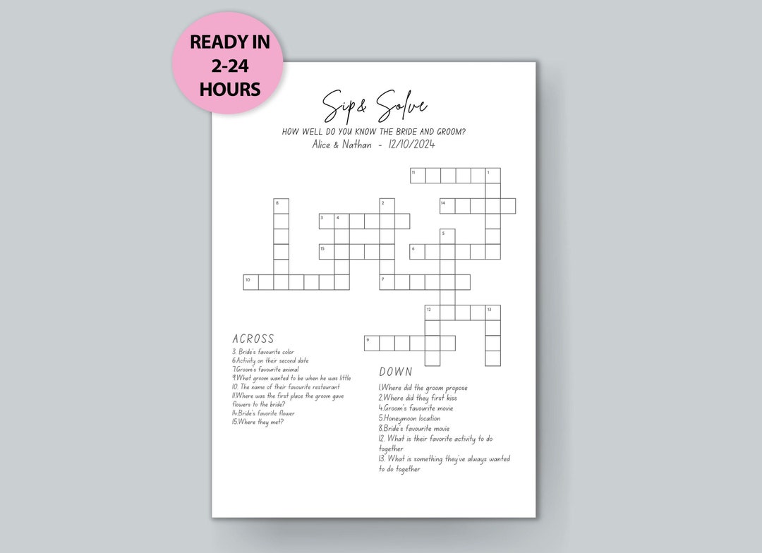 Custom Wedding Crossword Puzzle Sip and Solve Personalized Wedding