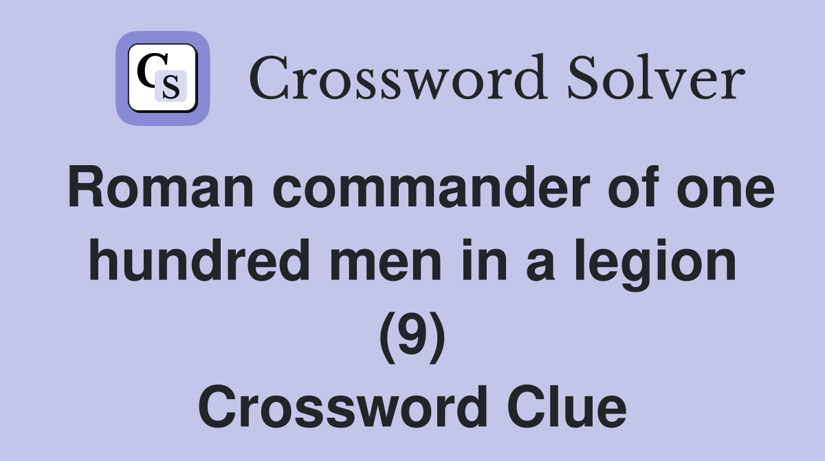 Roman commander of one hundred men in a legion (9) Crossword Clue