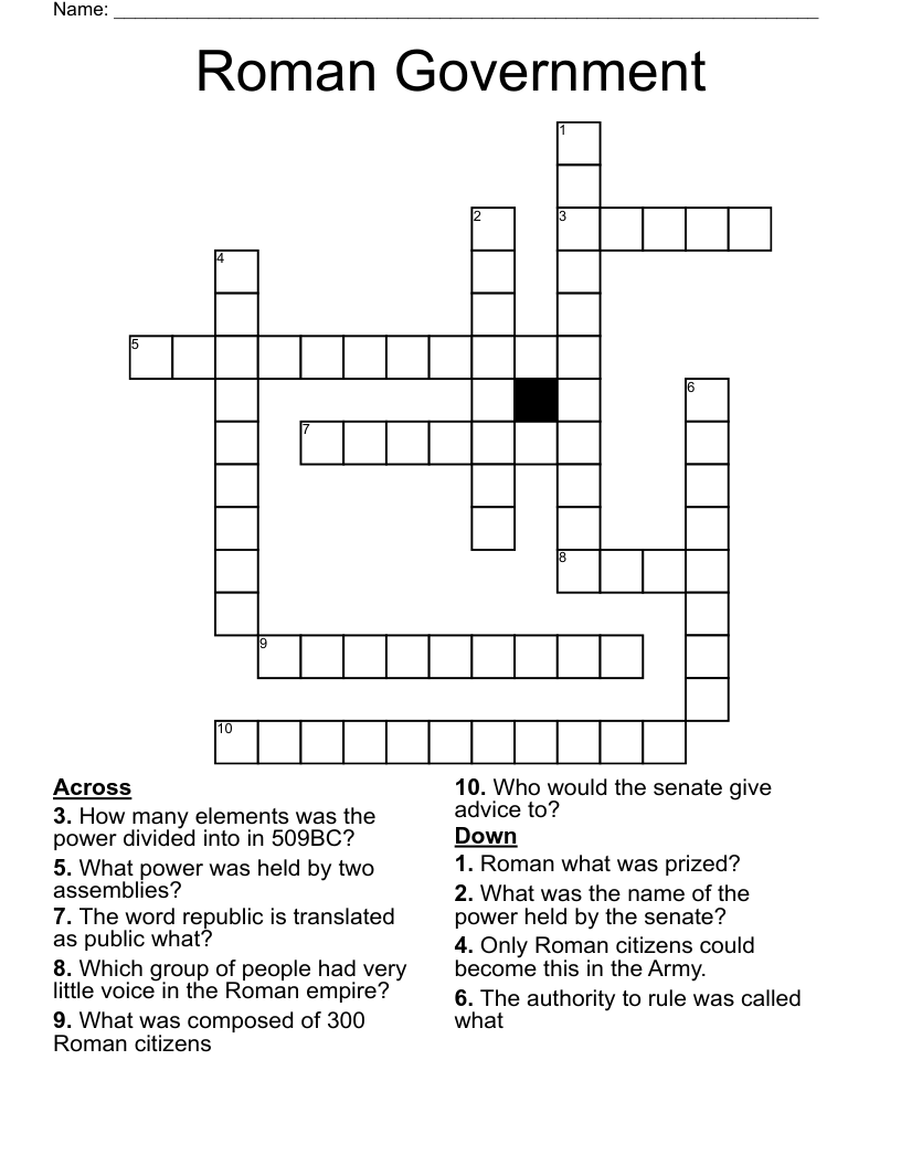 Ancient Rome Crossword Puzzle Review Teaching Resources