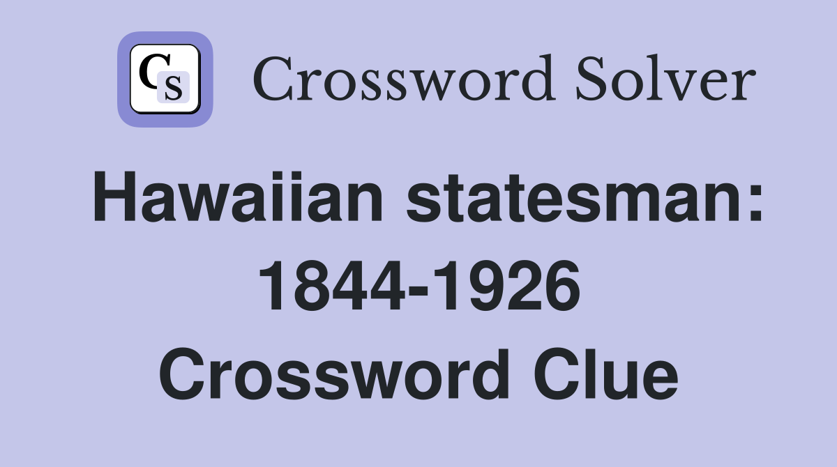 Hawaiian statesman: 1844 1926 Crossword Clue Answers Crossword Solver