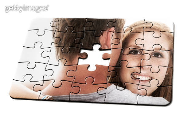 The puzzle of romance: jigsaw with one missing piece depicts a couple
