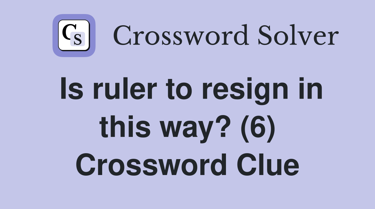 Is ruler to resign in this way? (6) Crossword Clue Answers