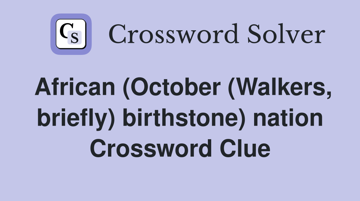 African (October (Walkers briefly) birthstone) nation Crossword Clue