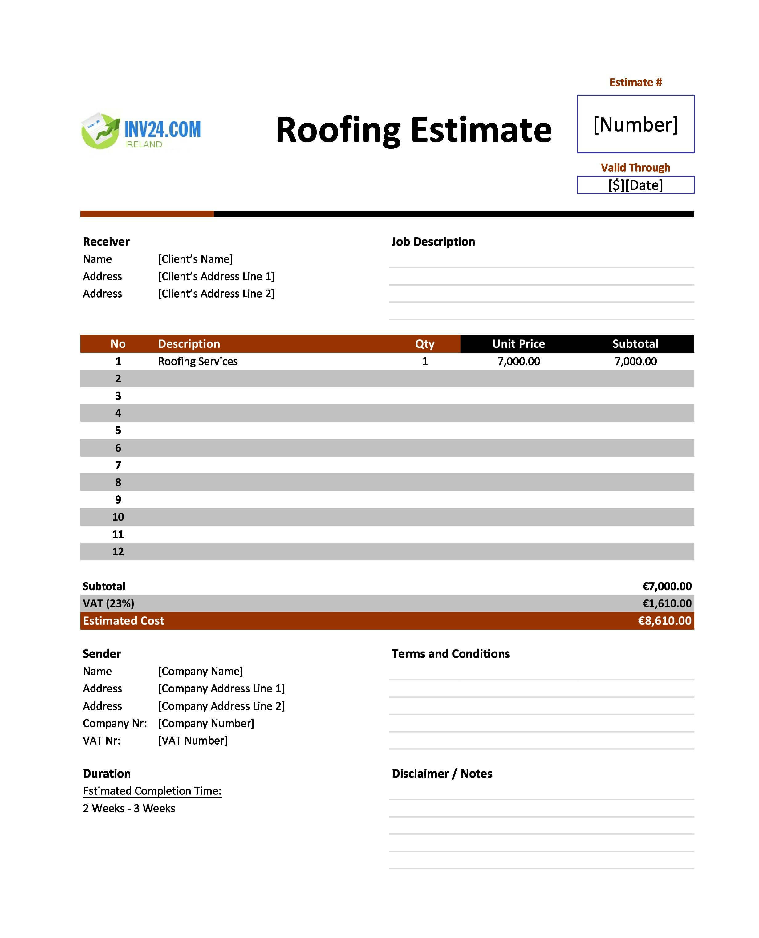 Free Roofing Invoice Template Metal Roof Estimate Excel