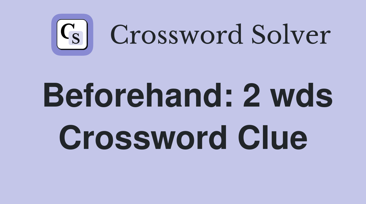 Beforehand: 2 wds Crossword Clue Answers Crossword Solver