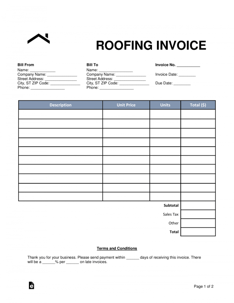 11 PDF INVOICE FOR ROOFING FREE PRINTABLE DOWNLOAD DOCX ZIP InvoiceForm