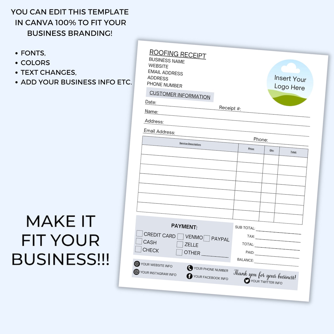 Roofing Company Receipt Template Editable Free Invoice Templates