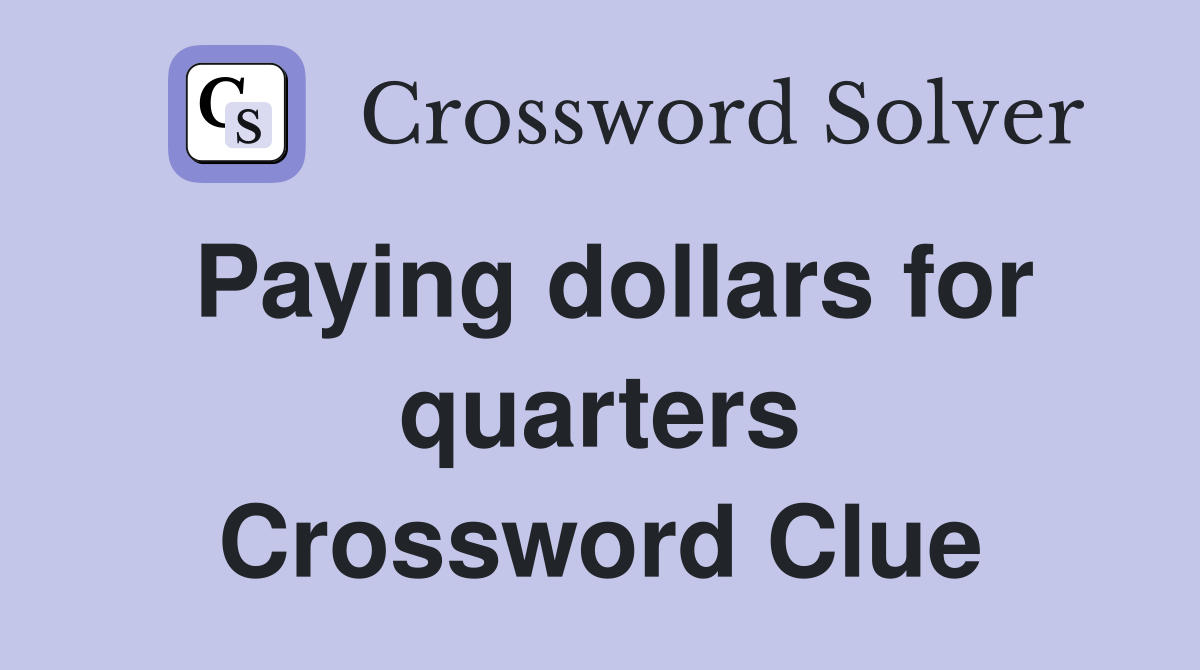Paying dollars for quarters Crossword Clue Answers Crossword Solver