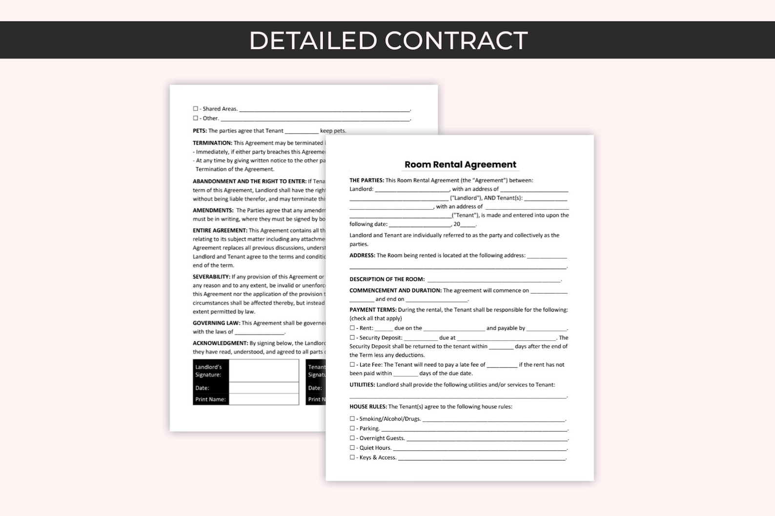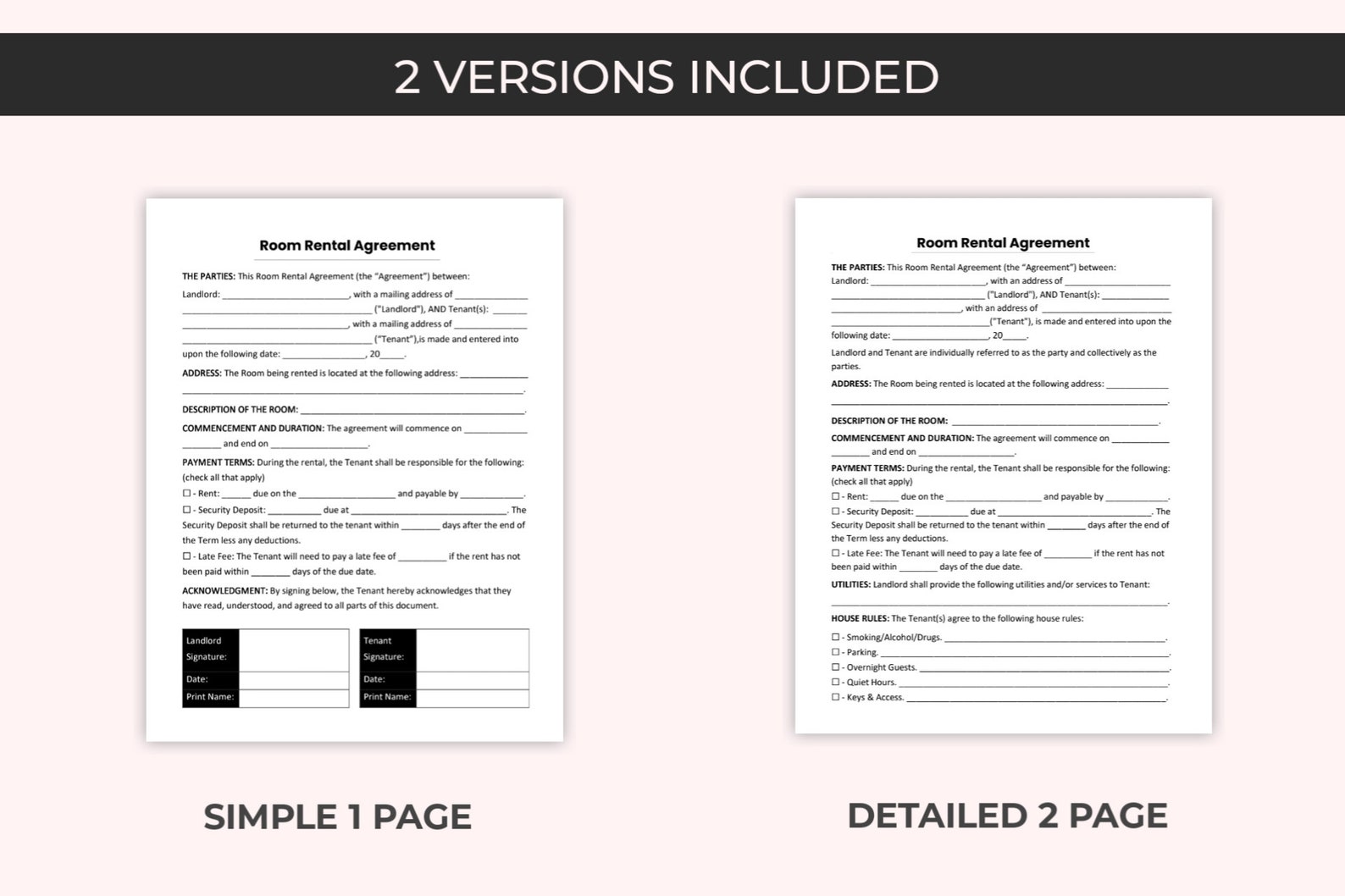 Room Rental Agreement Template: Editable in MS Word and Fillable PDF