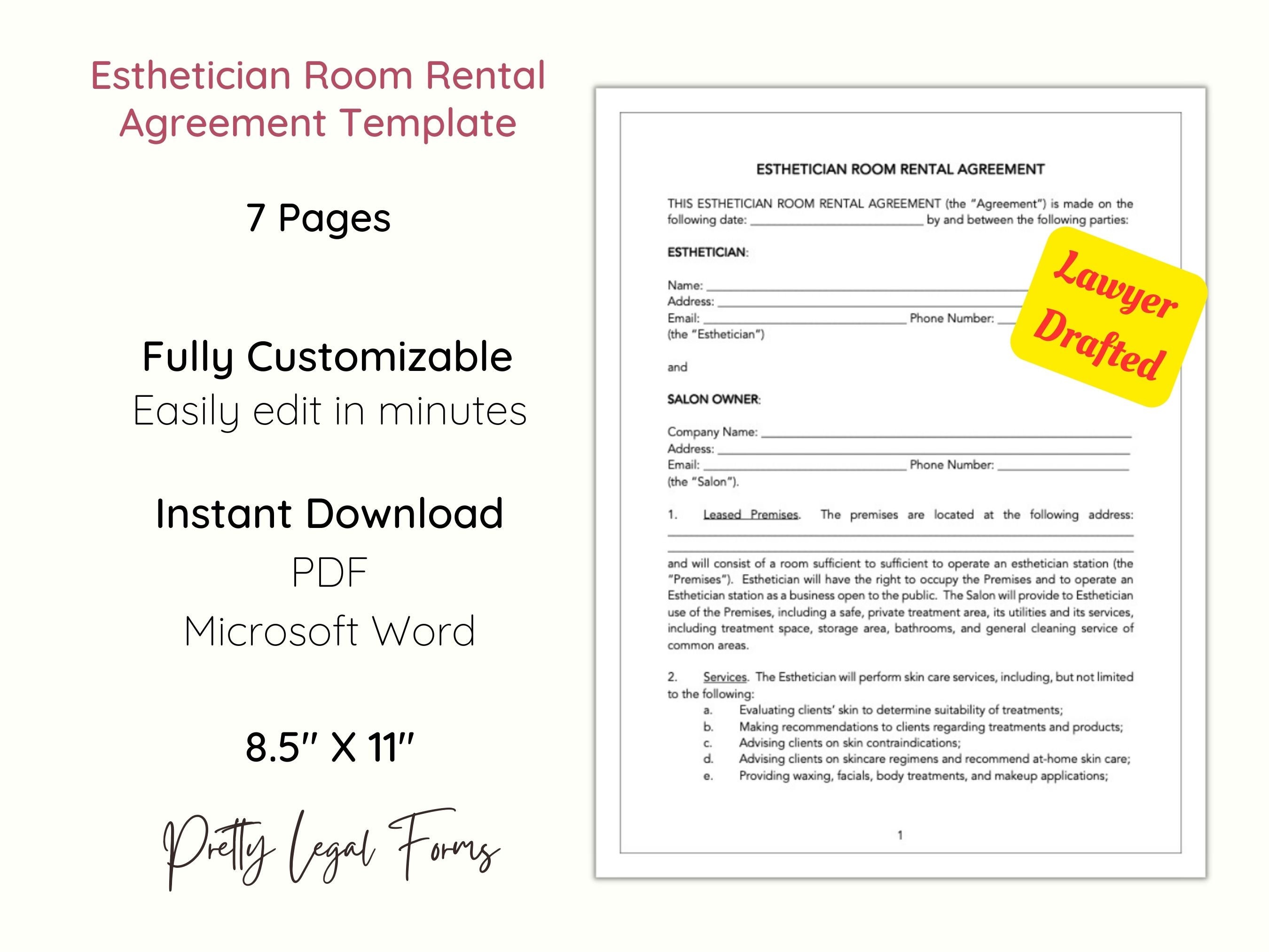 Esthetician Room Rental Contract Template Esthetician Suite Lease