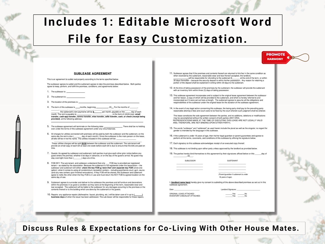 Roommate Sublease Agreement Template
