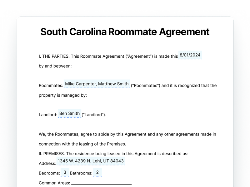 Free South Carolina Roommate Agreement Template (PDF Word Google Doc