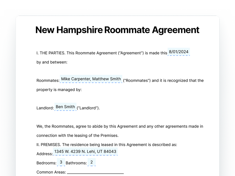 Free New Hampshire Roommate Agreement Template (PDF Word Google Doc