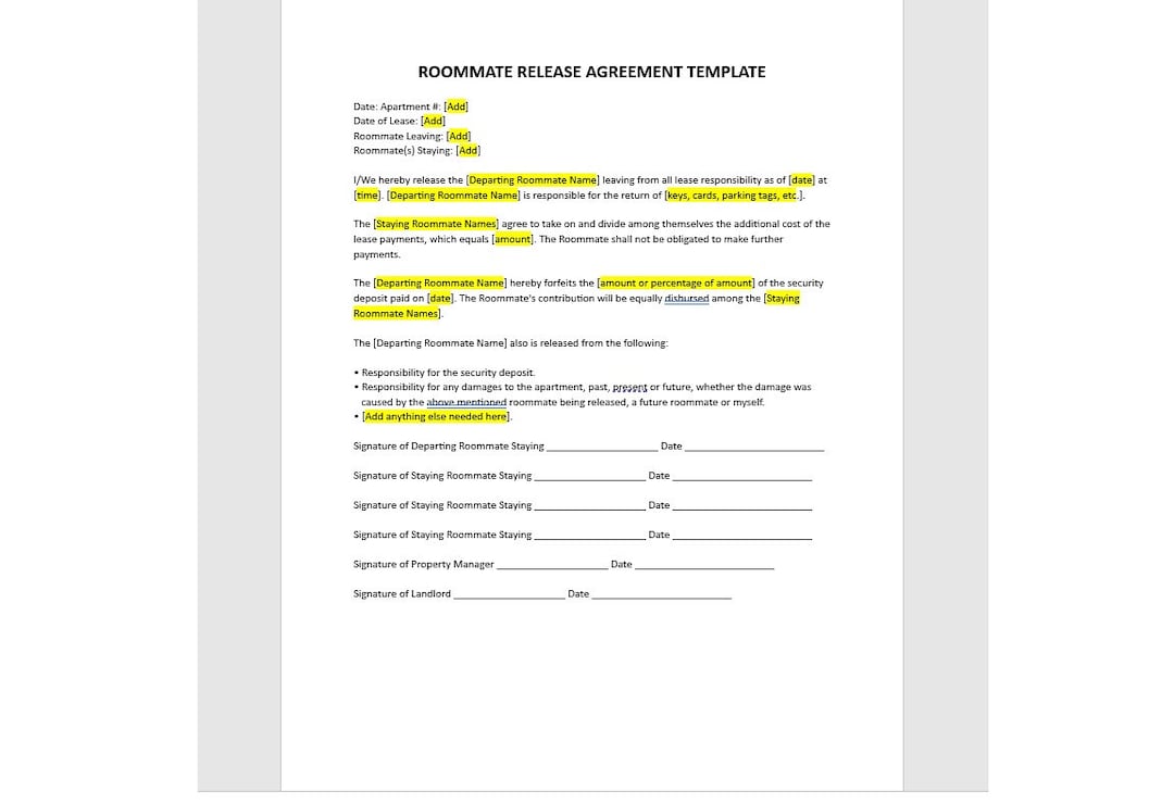 Roommate Release Form Word PDF Google Docs Highfile