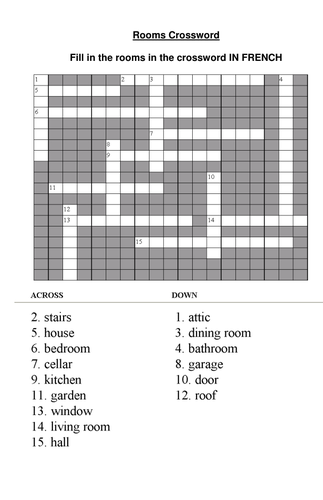 Rooms crossword Teaching Resources