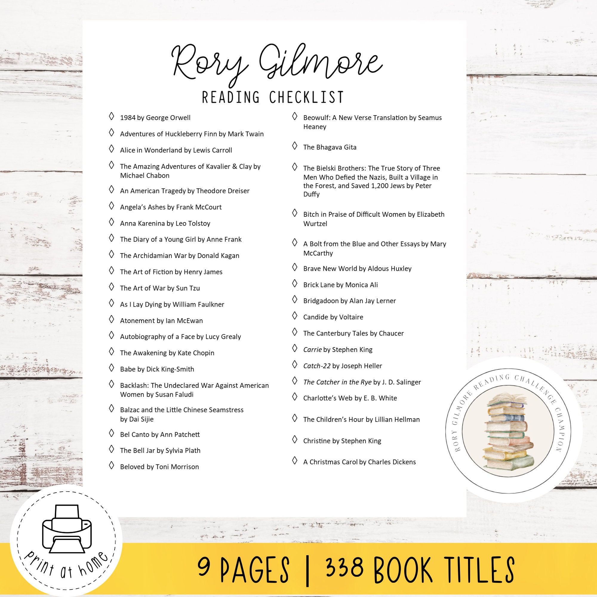 Rory Gilmore Reading Challenge Printable List Gilmore Girls Inspired