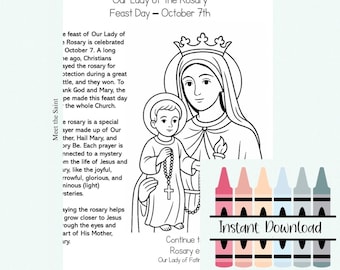 Our Lady of the Rosary Coloring Pages: Catholic Kids Printable Bundle