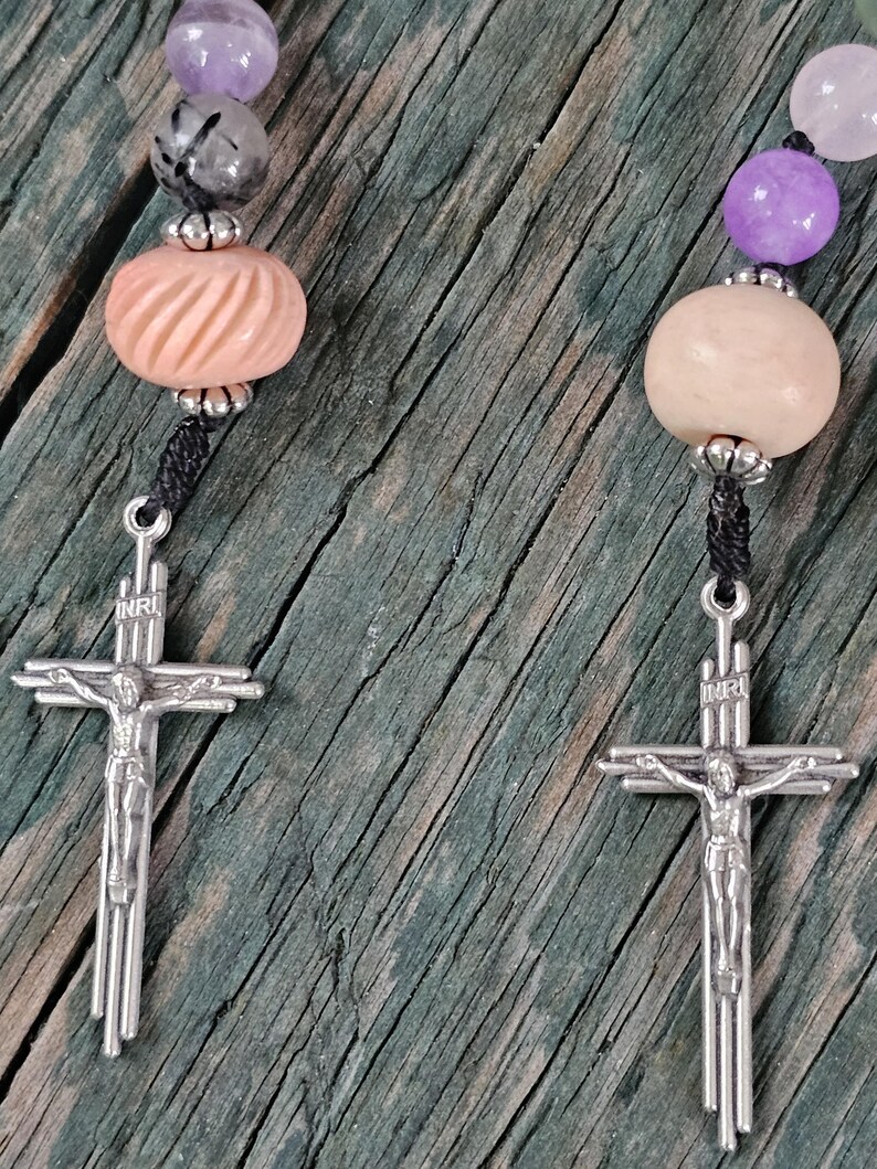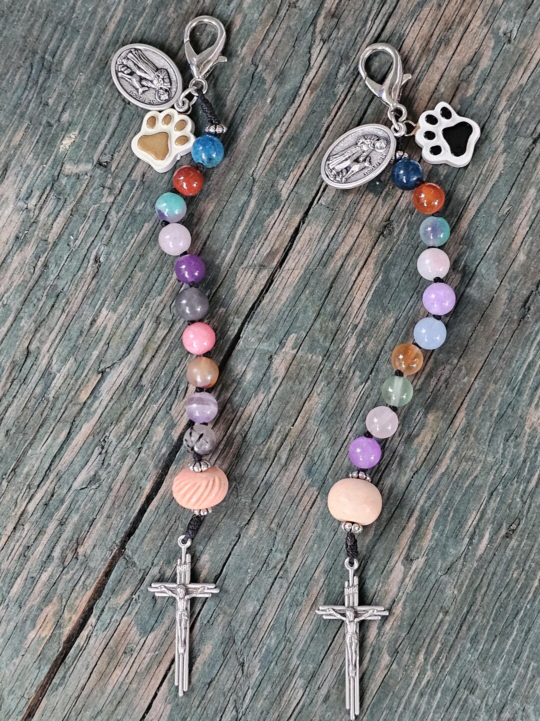 Saint Francis Pet Pocket Rosary: Natural Crystal Beads Paw Print Charm