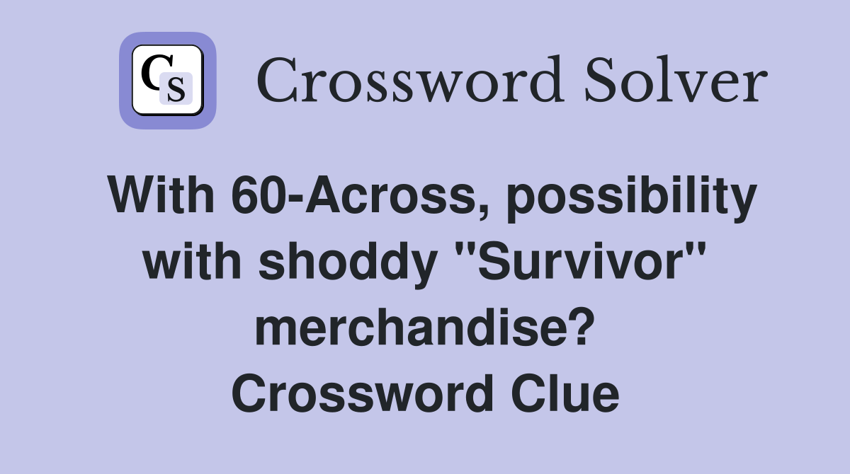With 60 Across possibility with shoddy quot Survivor quot merchandise