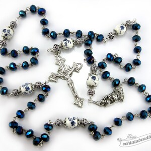 Dark Blue Crystal Rosary Blue Rosary First Communion Gift