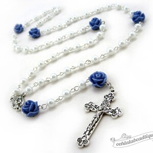 Royal Blue Pearl Beads Rosary with Holy Mother Medal Crucifix