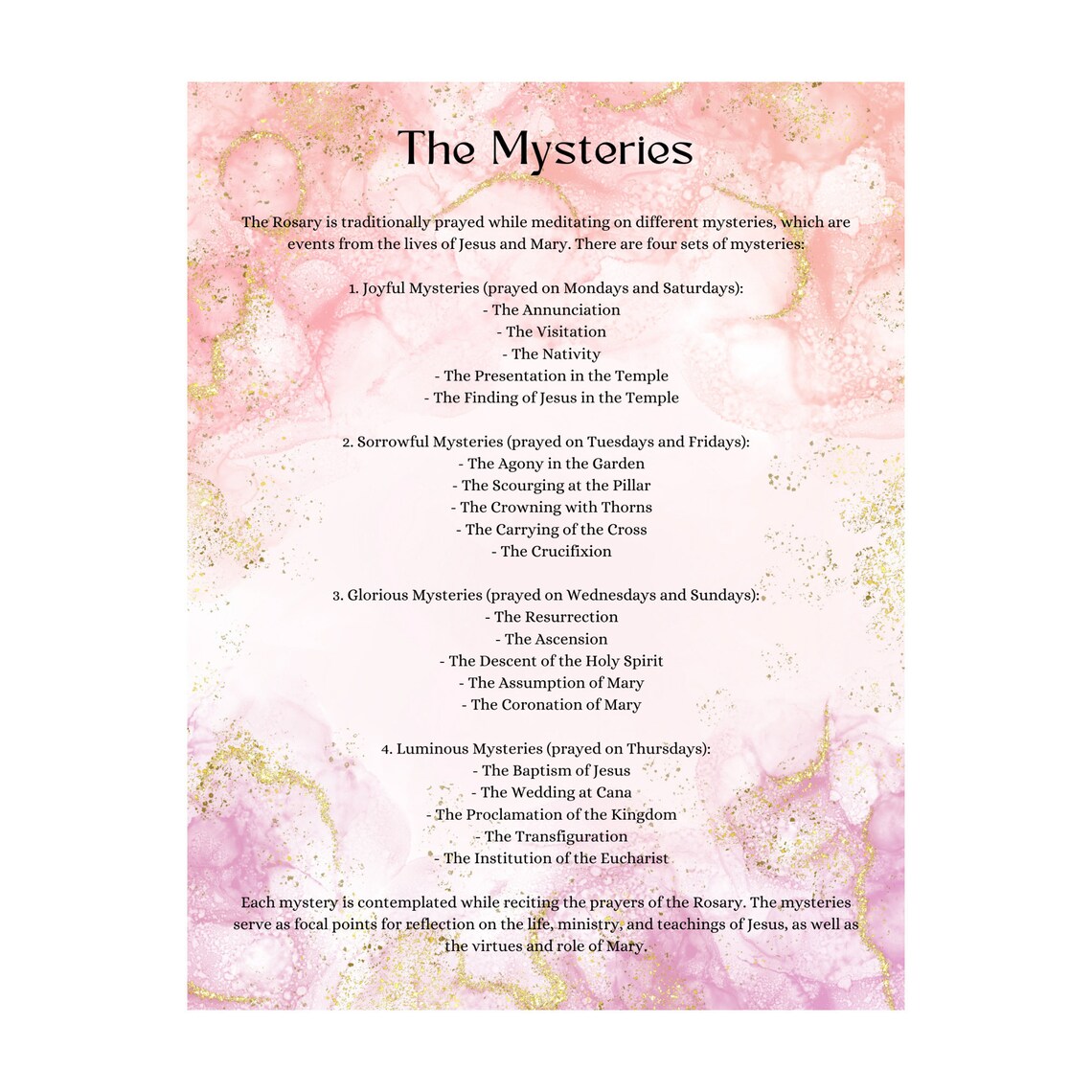 Rosary PRINTABLE DOWNLOAD Trifold Pamphlet With List of 4 Mysteries by