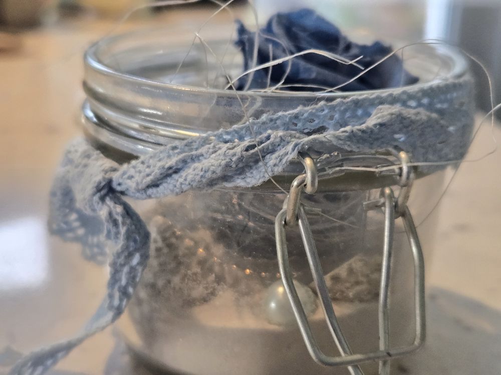 Romantische blaue Rose in Glasglocke mit Sand Zeitlos (Neu (gemäss