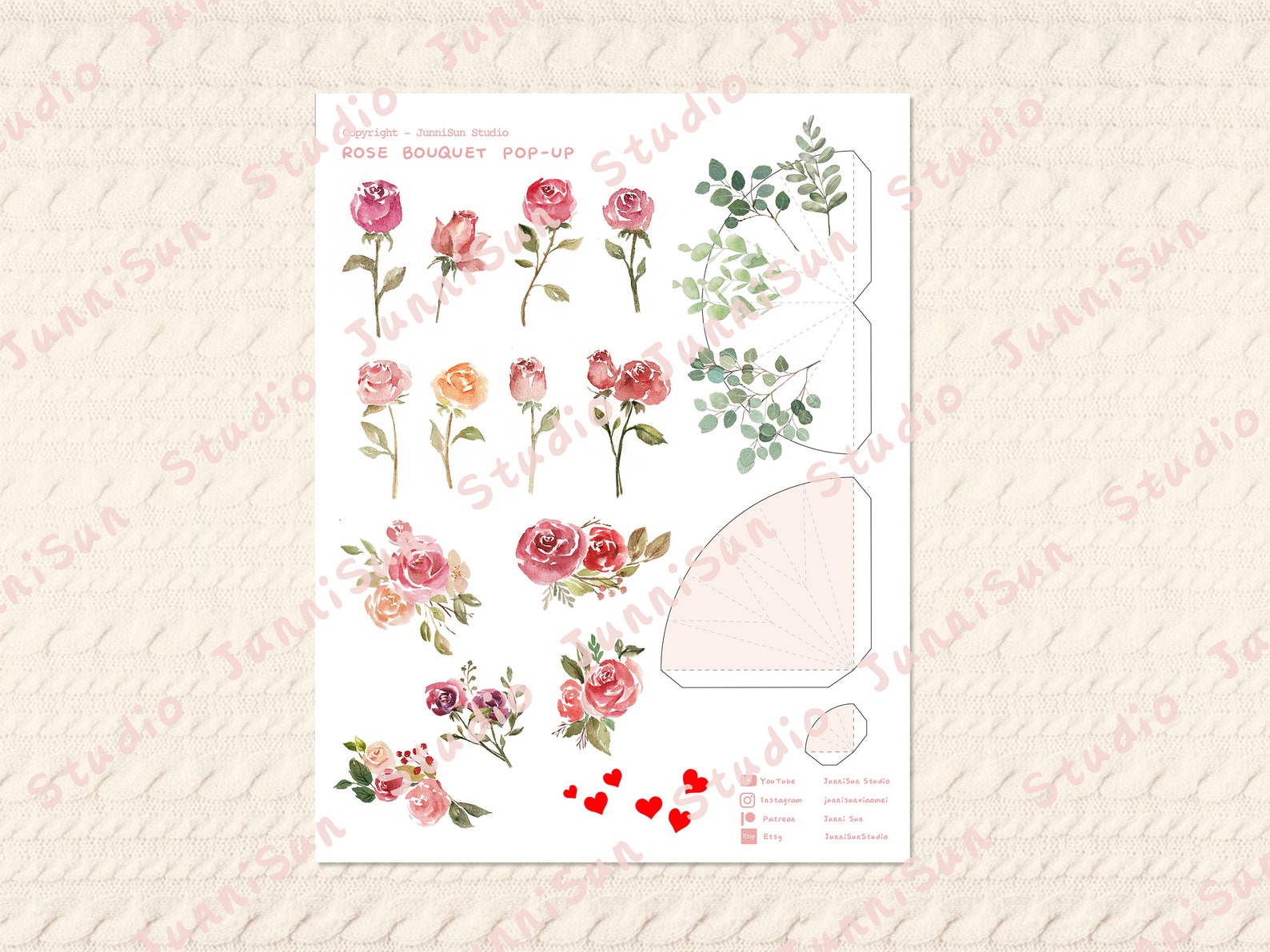 Rose Bouquet POP UP Card Template Junnisun Bullet Journal Etsy